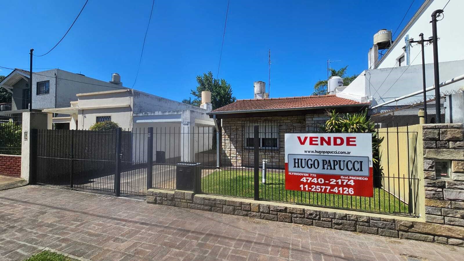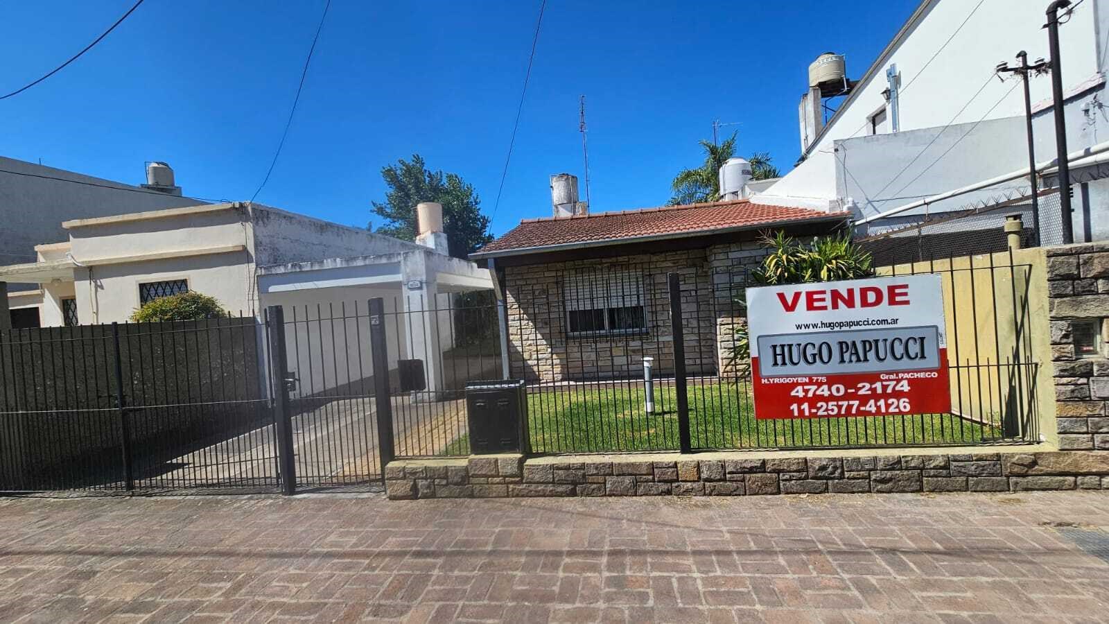 Chalet a la venta en General Pacheco. Casa principal: 2 dormitorios, cocina- comedor, baño , hall y depósito. Monoambiente: con baño Casa premoldeada: 1 dormitorio, cocina- comedor y baño Exterior: Galería semicubierta, sector de parrilla, cochera y jardín. Superficie cubierta: 160 m2 Medidas de lote: 10 x 31.25 Superficie de lote: 312.5 m2